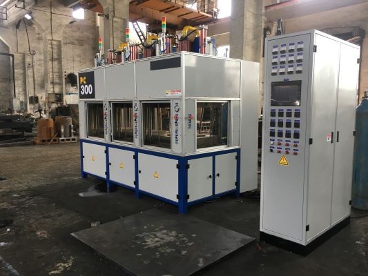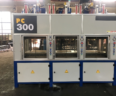 1.主机型式: 四柱式,三缸,三组热板,自上往下型式,控制柜在机器右侧。