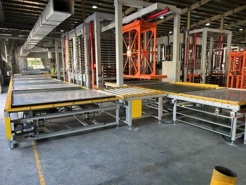 主机,双缸快慢速形式,热板四角导向,流转线部分,全自动控制,光电检测保护,全线除铺料位设置启动按钮外,其余全部自动识别有无料后运行压机升降,加热排水,料架进出料,输送线传送料。全线带故障报警功能。输送线部设置预存料程序。